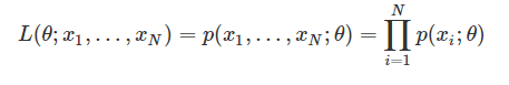 - x1,x2,⋯xn이 확률분포에서 나오는 독립적인 값이라면 결합 학률밀도함수는 곱으로 표현된다.