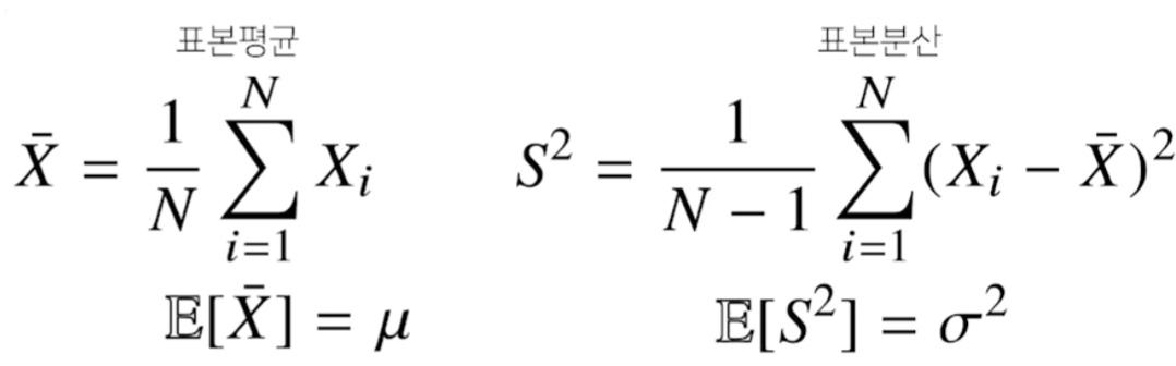 - 표본 분산에서 N-1로 나누는 이유는 불편(unbiased) 추정량을 구하기 위해서이다.